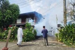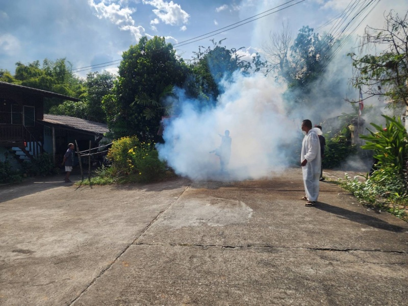 จัดกิจกรรมสำรวจและตรวจลูกน้ำยุงลาย โดยการพ้นสารเคมีแบบฝอยละออง ในบ้านสหกรณ์ หมู่ที่ 1 เพื่อป้องกันโรคไข้เลือดออก ประจำปี 2567