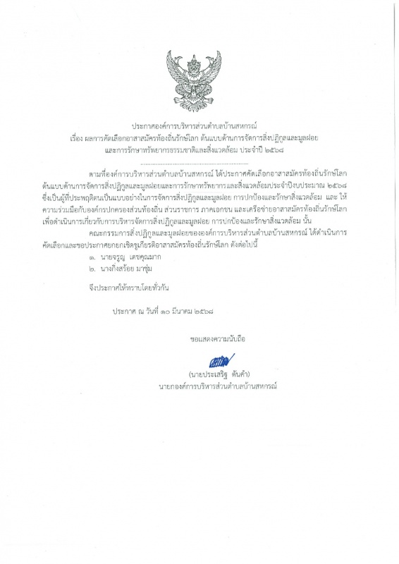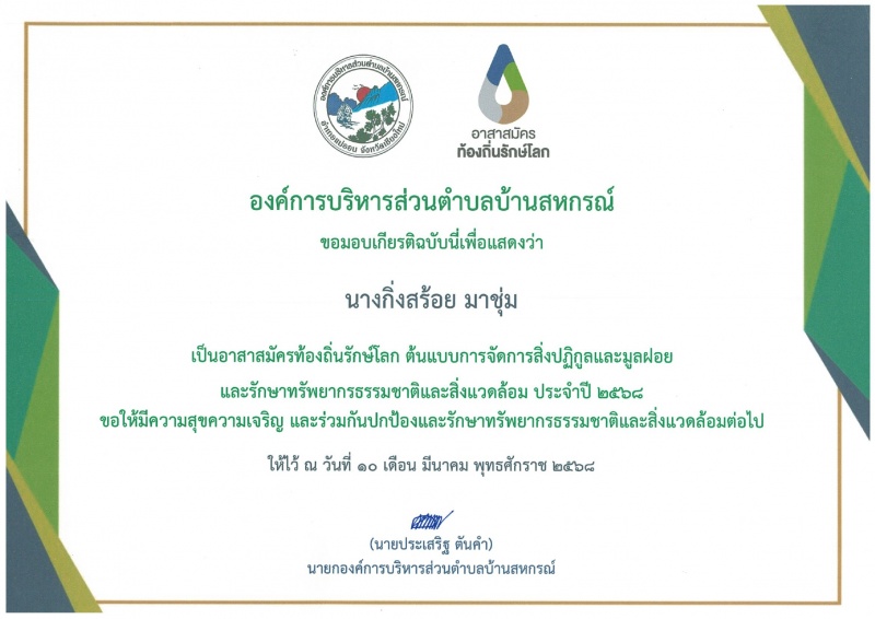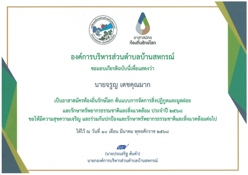 บ้านสหกรณ์ปฏิบัติหน้าที่นายกองค์การบริหารส่วนตำบลบ้านสหกรณ์