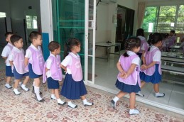เด็กนักเรียนศูนย์พัฒนาเด็กเล็กสิรินธรตำบลบ้านสหกรณ์ ได้ทำกิจกรรมปลูกฝั่งคุณธรรม จริยธรรม