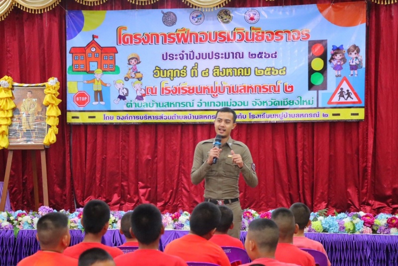 องค์การบริหารส่วนตำบลบ้านสหกรณ์ ได้จัดทำโครงการอบรมวินัยจราจรประจำปี 2568 ณ โรงเรียนบ้านสหกรณ์ โดยมี นาย ประพัฒน์ วงค์ชมพู ปลัดอาวุโส อำเภอแม่ออน เป็นประธานเปิดโครงการฯ ร่วมด้วย นาย ประเสริฐ ตันคำ นายกองค์การบริหารส่วนตำบลบ้านสหกรณ์ คณะผู้บริหาร สภาองค์การบริหารส่วนตำบลบ้านสหกรณ์ พนักงานเจ้าหน้าที่ฯกลุ่มงานจราจรสถานีตำรวจภูธรแม่ออน โดยมีวัตถุประสงค์เพื่อให้ผู้เข้าร่วมโครงการได้เกิดความรู้ความเข้าใจ ในการขับขี่ปลอดภัย มีความรู้เกี่ยวกับกฏจราจร เครื่องหมายจราจร สัณญาณจราจร การส่งเสริมความปลอดภัยในการสวมหมวกนิรภัยของเด็กนักเรียน โรงเรียนบ้านสหกรณ์ อำเภอแม่ออน จังหวัดเชียงใหม่
