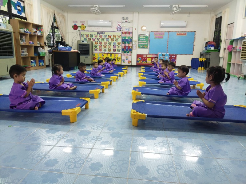 ตามคำสอนพระพุทธศาสนา ประจำดือนสิงหาคม 2568 เช่น การไหว้ การไหว้ขอบคุณผู้ใหญ่ กิจกรรมกล่าวขอบคุณอาหาร เดินอย่างเป็นระเบียบ การฝึกทำสมาธิ การเดินจงกลม การไหว้ การกราบสวดมนต์ก่อนนอน น้องไหว้พี่ พี่ไหว้น้อง