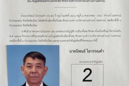 เรื่อง ชื่อผู้มีสิทธิสมัครรับเลือกตั้งสมาชิกสภากองค์การบริหารส่วนตำบลบ้านสหกรณ์ และนายกองค์การบริหารส่วนตำบบ้านสหกรณ์