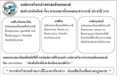 ประชาสัมพันธ์การชำระภาษีประจำปี 2557