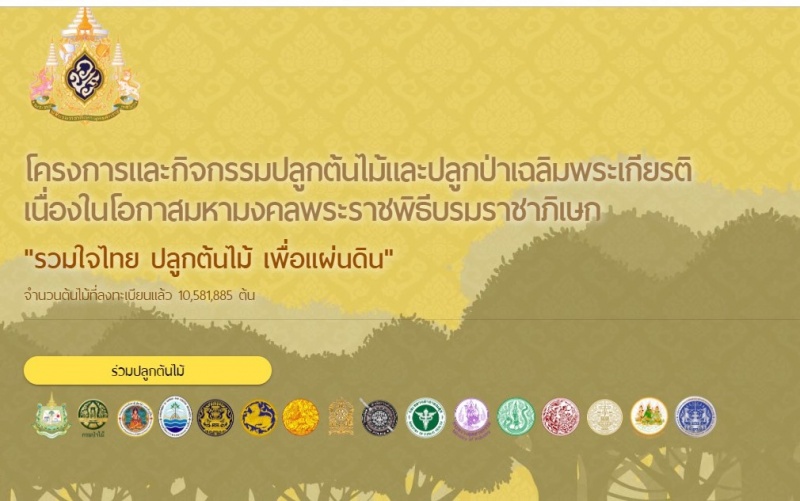 ในโครงการ "รวมใจไทย ปลูกต้นไม้ เพื่อแผ่นดิน" โดยร่วมกันปลูกต้นไม้อย่างน้อยคนละ 1 ต้น พร้อมทั้งลงทะเบียน การปลูกต้นไม้ในเว็บไซต์กรมป่าไม้http://plant.forest.go.th จึงเรียนมาเพื่อทราบและประชาสัมพันธ์ต่อไป