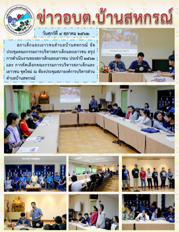วันศุกร์ที่ 4 ตุลาคม 2562 สภาเด็กและเยาวชนตำบลบ้านสหกรณ์ จัดประชุมคณะกรรมการบริหารสภาเด็กและเยาวชน โดยมีรายละเอียดการประชุมดังนี้