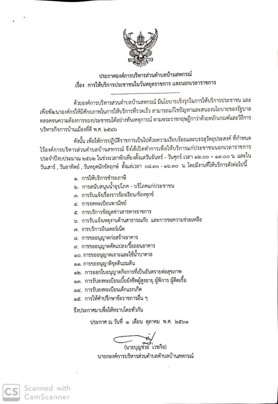 บ้านสหกรณ์ปฏิบัติหน้าที่นายกองค์การบริหารส่วนตำบลบ้านสหกรณ์