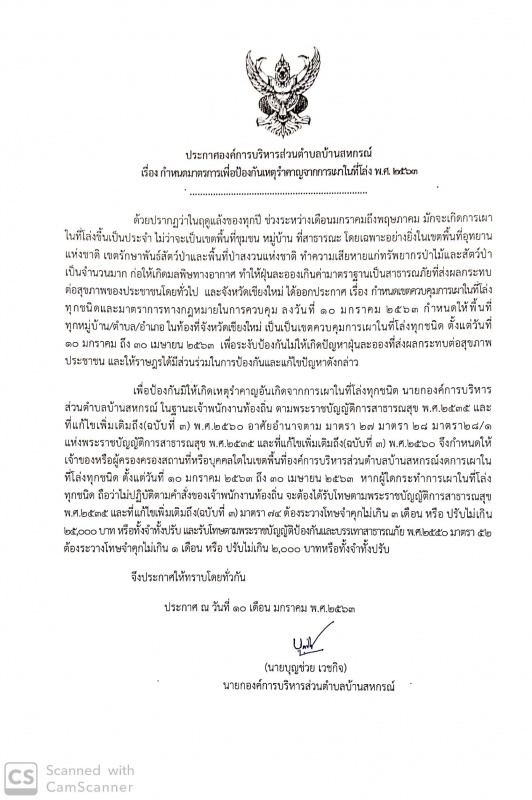 กำหนดมาตรการเพื่อป้องกันเหตุรำคาญจากการเผาในที่โล่ง พ.ศ.2563