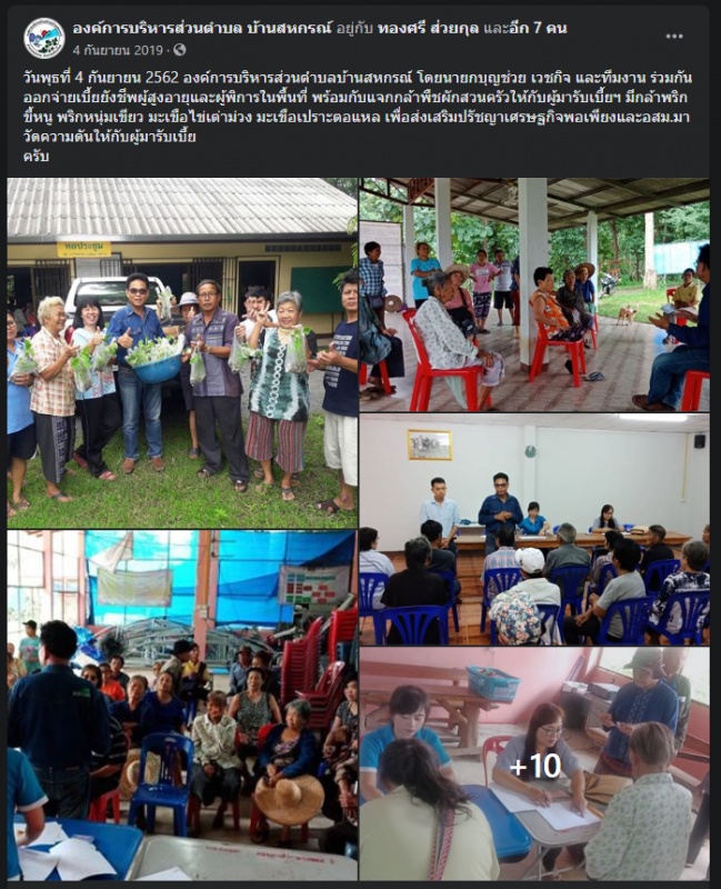 กิจกรรมจ่ายเบี้ยยังชีพผู้สูงอายุและผู้พิการในพื้นที่พร้อมกับแจกกล้าพืชผักสวนครัว
