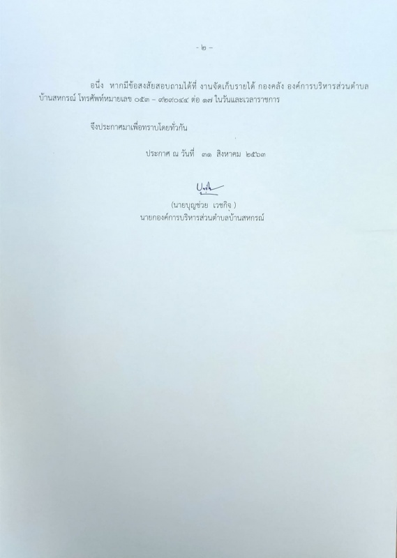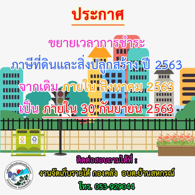 ประกาศ!! แจ้งการขยายเวลาชำระภาษีที่ดินและสิ่งปลูกสร้างประจำปี 2563