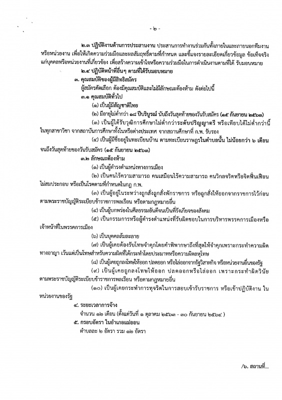 ระยะเวลาจ้างงานจำนวน 12 เดือน (1 ตุลาคม - 30 กันยายน 2564)