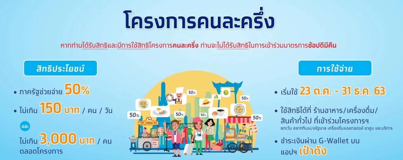 ***ผู้ถือบัตรสวัสดิการแห่งรัฐไม่สามารถเข้าร่วมได้เนื่องจากมีการเพิ่มวงเงินใช้จ่ายผ่านบัตรสวัสดิการแห่งรัฐแทน อ่านเพิ่มเติมได้ที่ โครงการเพิ่มกำลังซื้อให้แก่ผู้มีบัตรสวัสดิการแห่งรัฐ (ผู้มีบัตรฯ)