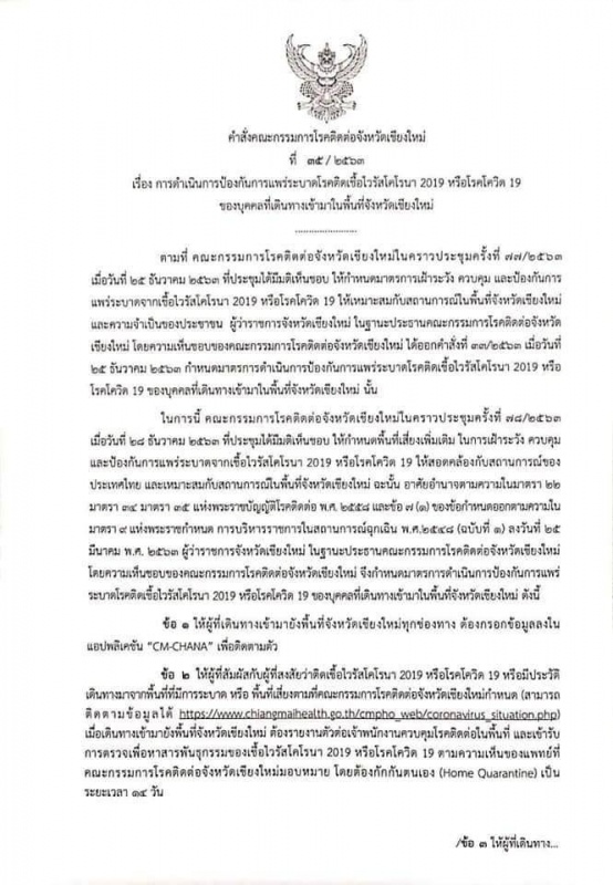 #คำสั่งคณะกรรมการโรคติดต่อจังหวัดเชียงใหม่ ที่ 35/2563