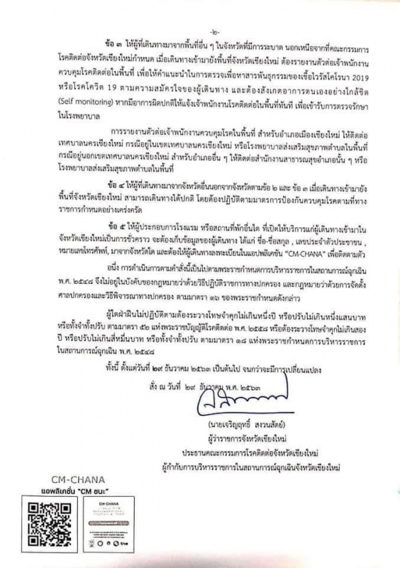 คำสั่งคณะกรรมการโรคติดต่อจังหวัดเชียงใหม่ ที่ 35/2563