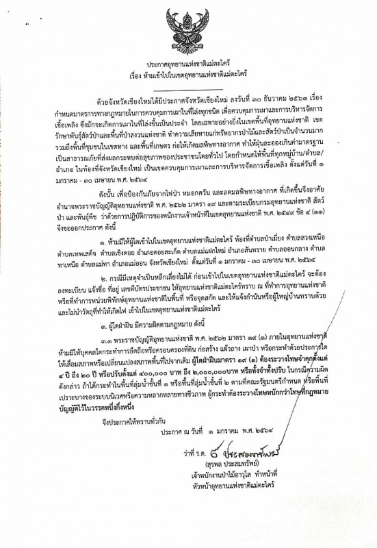 เรื่อง ห้ามเข้าไปในอุทยานแห่งชาติแม่ตะไคร้