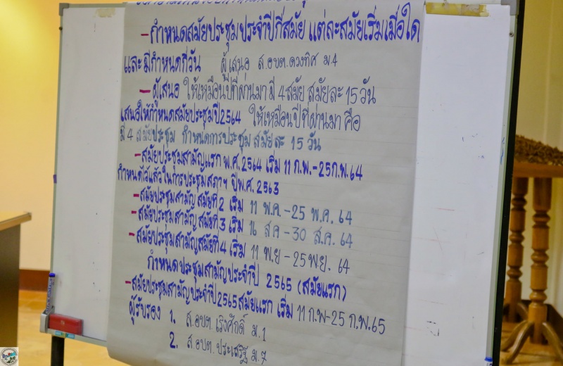 - ขอความเห็นชอบ พิจารณากำหนดสมัยประชุมสภาสมัยสามัญ ประจำปี พ.ศ. 2564 และสมัยประชุมสภาสมัยสามัญ สมัยแรก ประจำปี พ.ศ. 2565 โดยนายประเสริฐ จันทร์แท่น เลขานุการสภาฯ