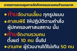 3. #ห้ามจัดงานหรือกิจกรรมใดๆที่มีคนมารวมตัวกันตั้งแต่10คนขึ้นไป เว้นแต่เป็นการจัดกิจกรรมของทางราชการ ซึ่งต้องปฏิบัติตามมาตรการป้องกันโรคอย่างเคร่งครัดสำหรับงานอวมงคล ให้จำกัดจำนวนผู้เข้าร่วมกิจกรรมไม่เกิน 50 คน