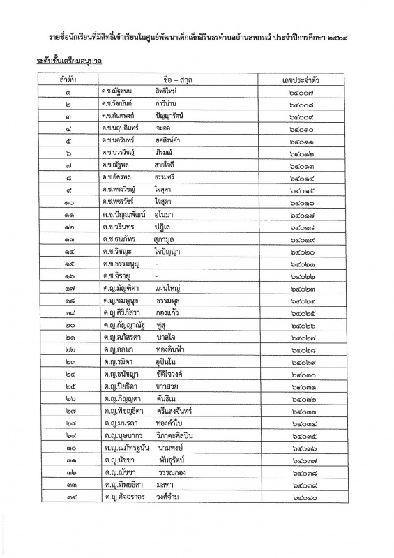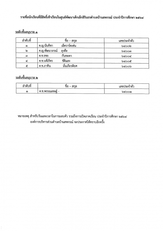 เรื่อง #รายชื่อเด็กนักเรียนที่มีสิทธิ์เข้าเรียนในศูนย์พัฒนาเด็กเล็กสิรินธรตำบลบ้านสหกรณ์ ประจำปีการศึกษา 2564