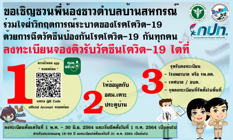#เปิดรับลงทะเบียนเตรียมฉีดวัคซีนป้องกันโรคติดเชื้อไวรัสโคโรนา 2019 (COVID-19) ตั้งแต่บัดนี้ ถึงวันที่ 30 มิถุนายน 2564 ลงทะเบียนฉีดวัคซีน ได้ที่