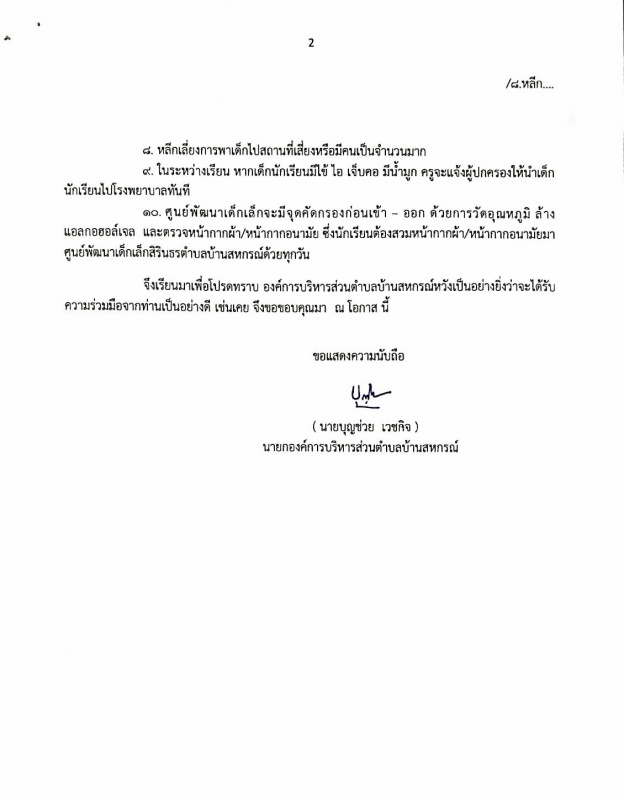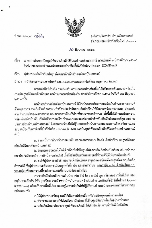 มาตรการในการเปิดศูนย์พัฒนาเด็กเล็กสิรินธรตำบลบ้านสหกรณ์ ภาคเรียนที่ 1 ประจำปีการศึกษา 2564