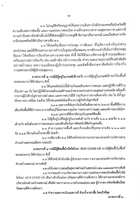เรื่องมาตรการป้องกันการแพร่ระบาดในภาวะฉุกเฉินของโรคติดเชื้อไวรัสโคโรนา 2019