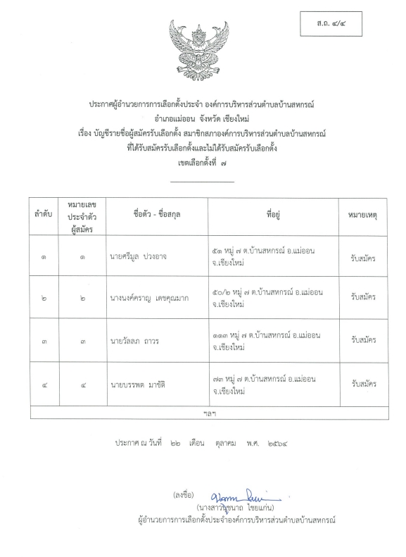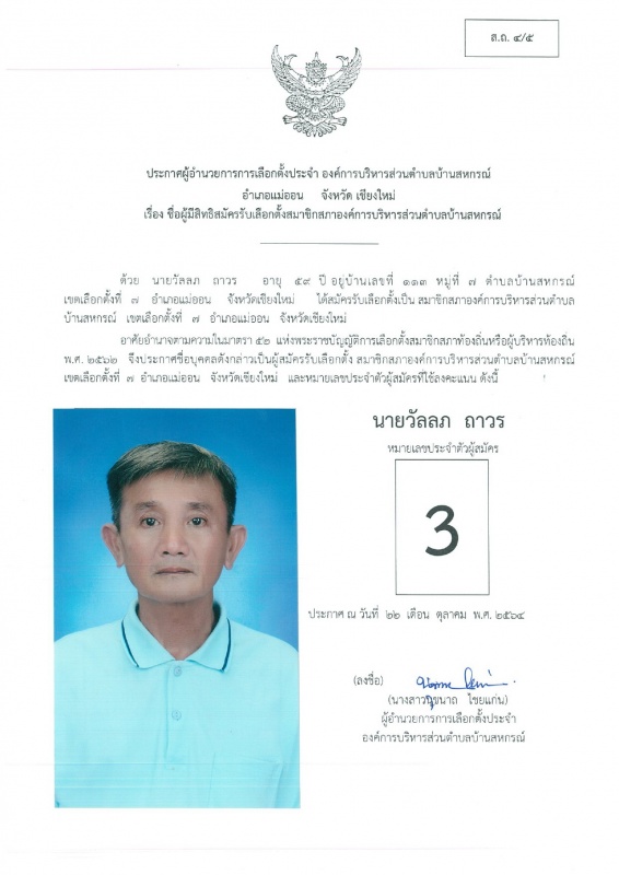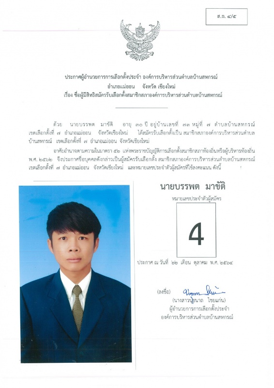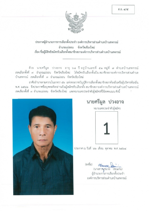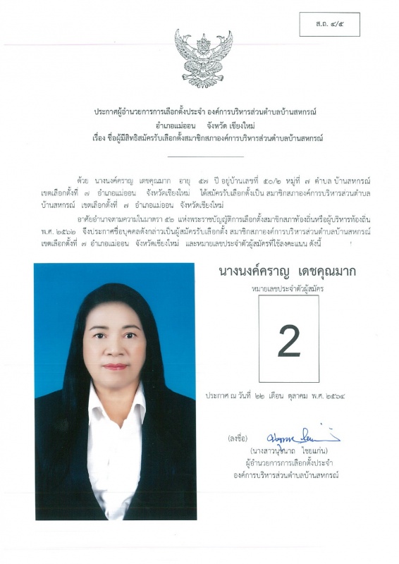 บ้านสหกรณ์ปฏิบัติหน้าที่นายกองค์การบริหารส่วนตำบลบ้านสหกรณ์